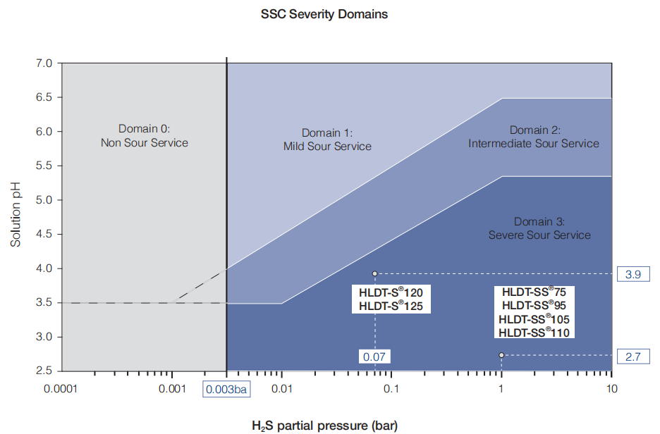 ·HLDT-S®120 and HLDT-S®125 high-strength sour service drill pipes, satisfying the high strength and the resistance to hydrogen sulfide simultaneously, can be used for deep wells and extended reach wells in sour service environment.