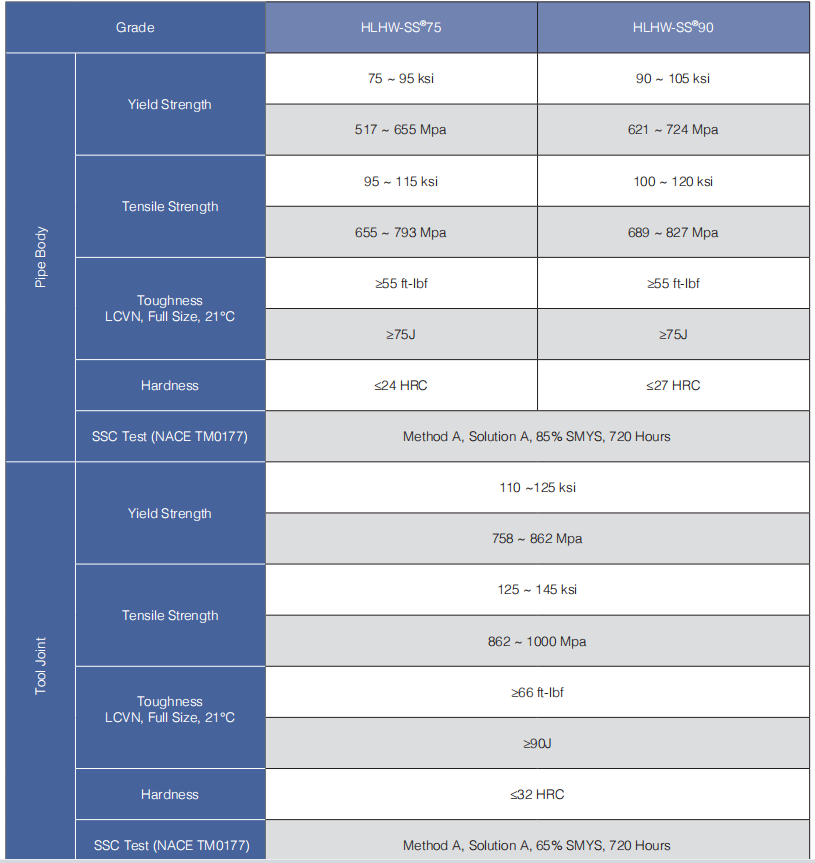 (d)Hilong Sour Service HWDP Grade:HLHW-SS®75 and HLHW-SS®90.