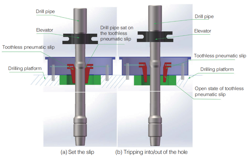 ·It completely avoids the slip crush on drill pipe body when associated with toothless pneumatic slip, thus extend the drill pipe service life;
